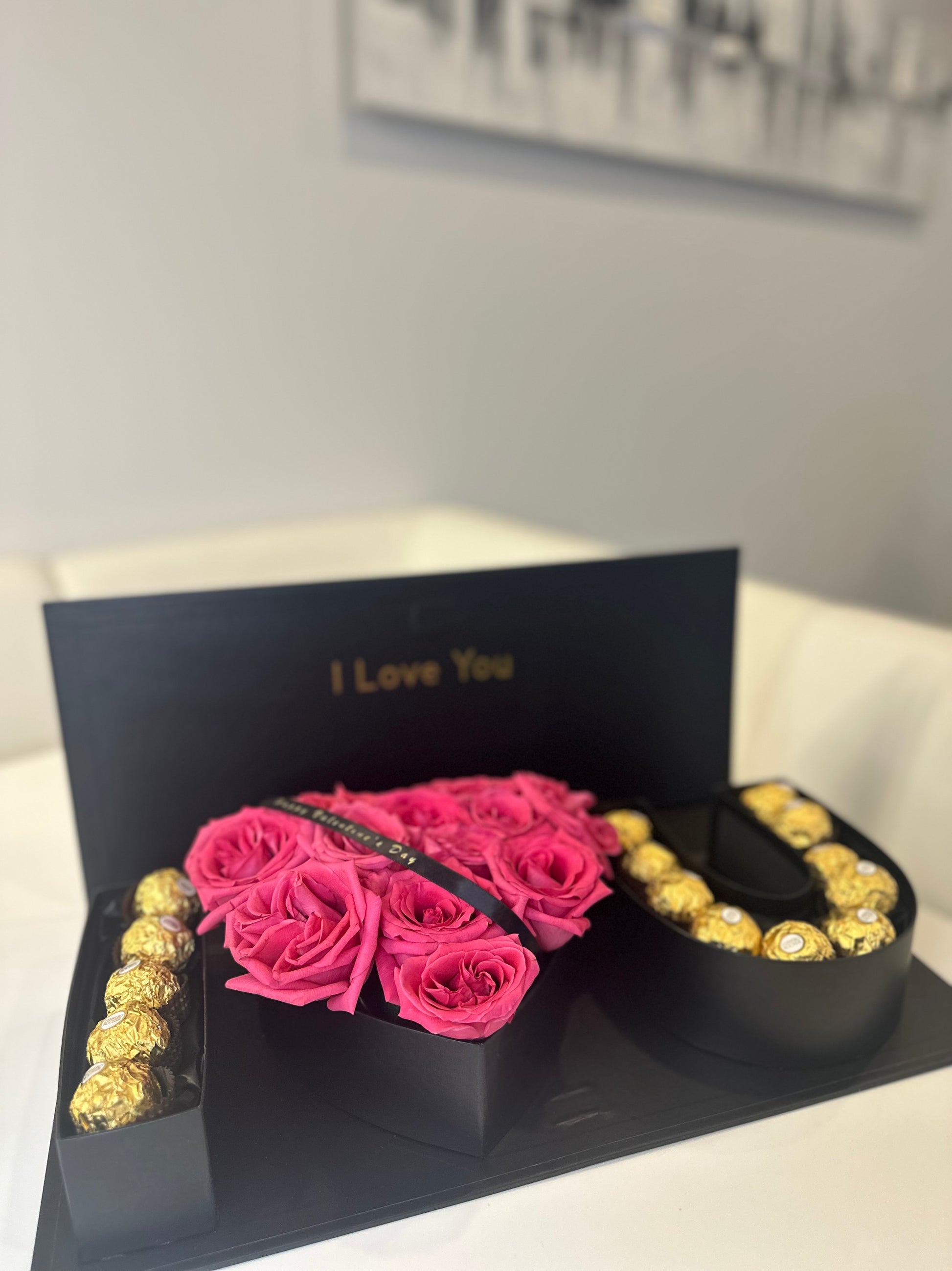 A dose of love for the one who has your heart or as a gift for yourself. This I Heart You Box filled with roses and Ferrero Rocher chocolates- a beautiful box design as the ultimate I love you. It will look perfect in the bedroom or displayed on your coffee table.